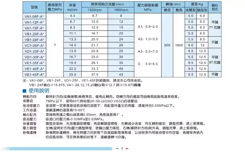 VA1系列葉片泵