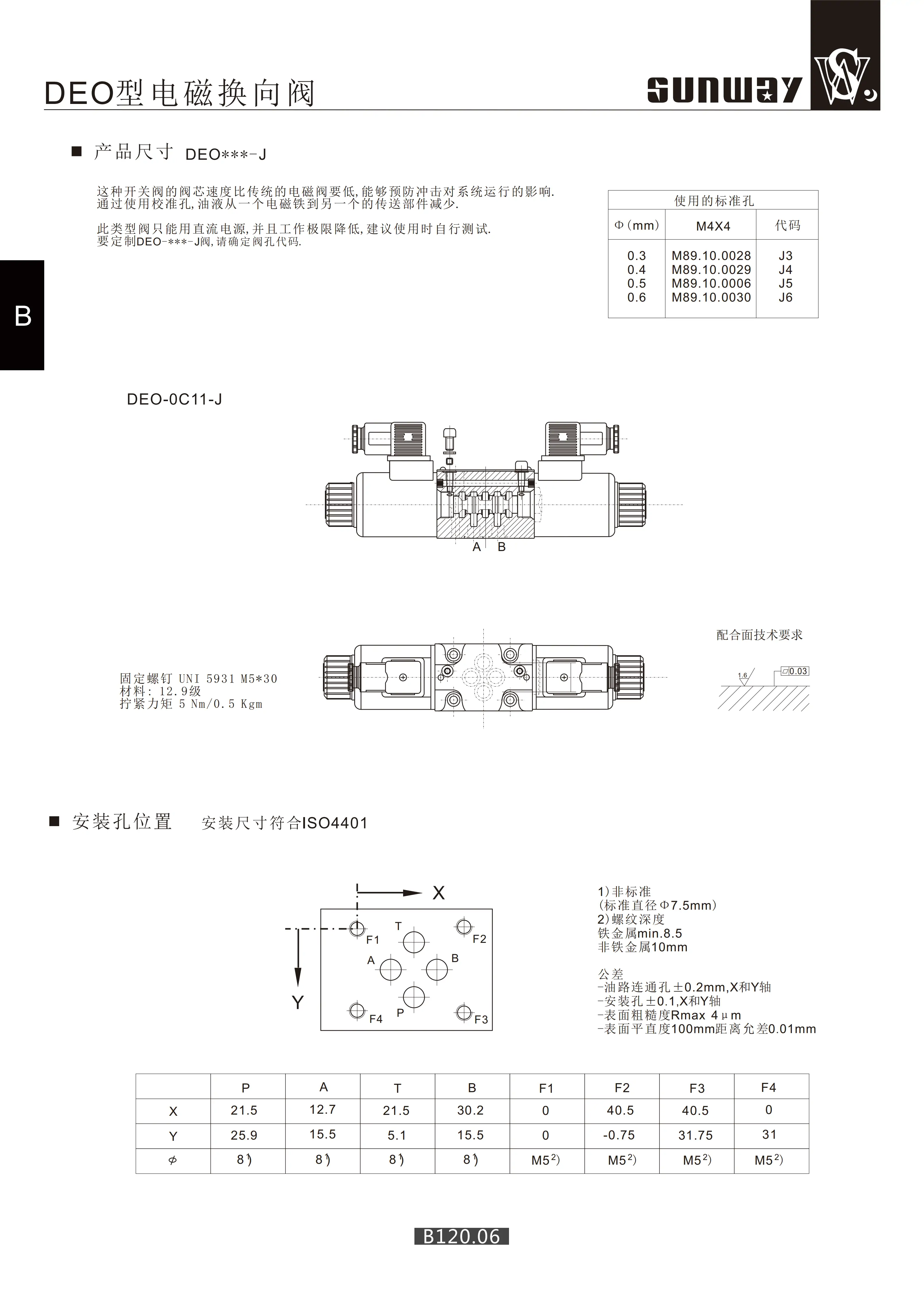 安裝方式板式(ISO 4401-06 標(biāo)準(zhǔn)安裝面)螺栓固定于閥塊