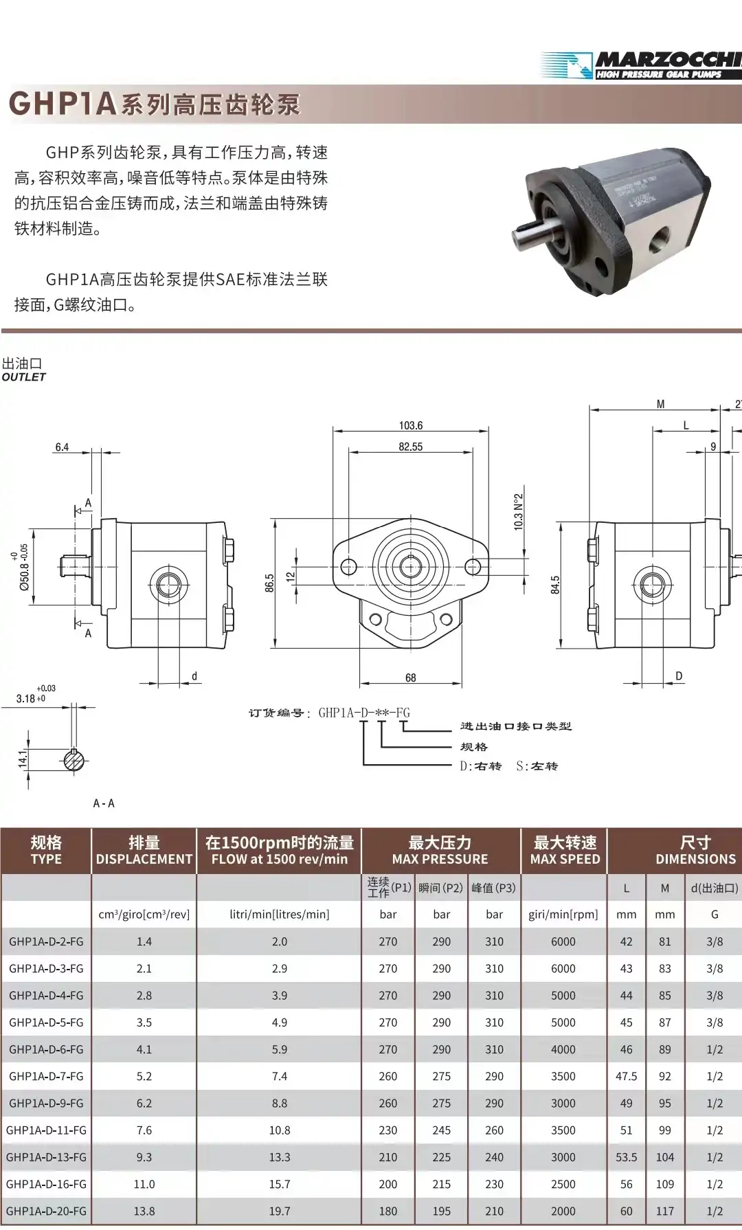 ALP1A-D-2 3 4 5 6 7 9 11 13 16 20 -FG MARZOCCHI馬祖奇齒輪泵